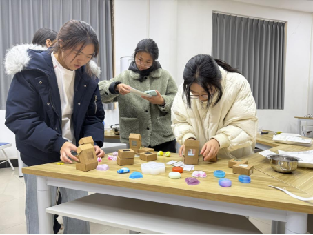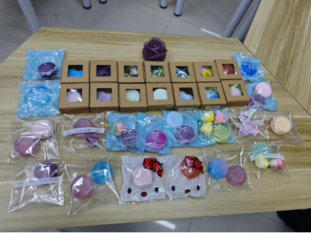 在动手实践环节,同学们分组协作,兴致盎然。大家精心调配皂基,选择喜爱的本草干花、植物精油进行个性化创作。有的同学融入金银花与薄荷,清凉舒爽;有的搭配艾草与柠檬精油,香气淡雅。过程中,不时传来欢声笑语,现场气氛温馨而热烈。经过称量、搅拌、调色、入模、冷却等一系列工序,一块块造型别致、成分天然的手工皂逐渐成型,每一件作品都承载着同学们的巧思与期待。