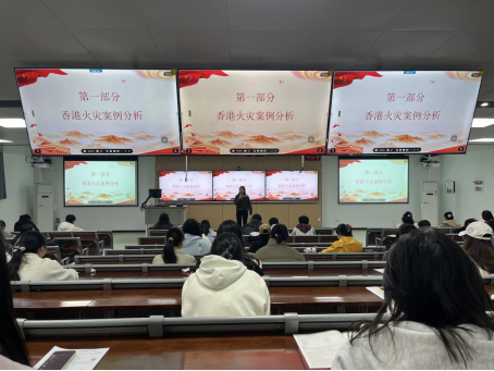 班会从近期社会关注的火灾案例引入,结合视频与图文讲解,生动呈现火势蔓延的迅速与火灾带来的严重后果。主讲同学详细讲解了初期火灾的应对方法:电器起火应先断电,再用干粉灭火器扑救;报警时须冷静说明地址、火情及人员情况;逃生时用湿毛巾捂住口鼻,低姿快速撤离,严禁使用电梯。通过真实案例,同学们深刻体会到“防患于未然”的重要性。