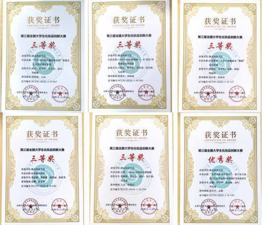 在这场高手云集的赛场上,经过激烈角逐,亚洲必赢最终斩获6项国家级奖项,取得历史性突破。由胡明丽老师指导的赵可同学负责的项目《“POP AROMA爆珠香水贴”智能交互式情绪调节系统》、王诗老师指导的李佩瑶同学负责的项目《灵眸·Janus 双相仙灵脾眼膜》、程琪庆老师指导的左秋月同学负责的项目《ColorSense科颜感——智能变色痘痘贴》、莫启贵老师指导的杨欣怡同学负责的项目《活参静膜·人参干细胞驱动“睡膜”动态驻颜》、以及边樱等老师指导的章意婷同学负责的项目《柏术遗韵香水》荣获全国三等奖。由张丹丹老师指导的袁馨同学负责的项目《基于仿生渗透与生态珠光的中药智能护发系统研发》项目荣获全国优秀奖。获奖项目涵盖了产品创意与配方创意两大主流赛道,体现了学生多元的创新视角与扎实的专业功底。